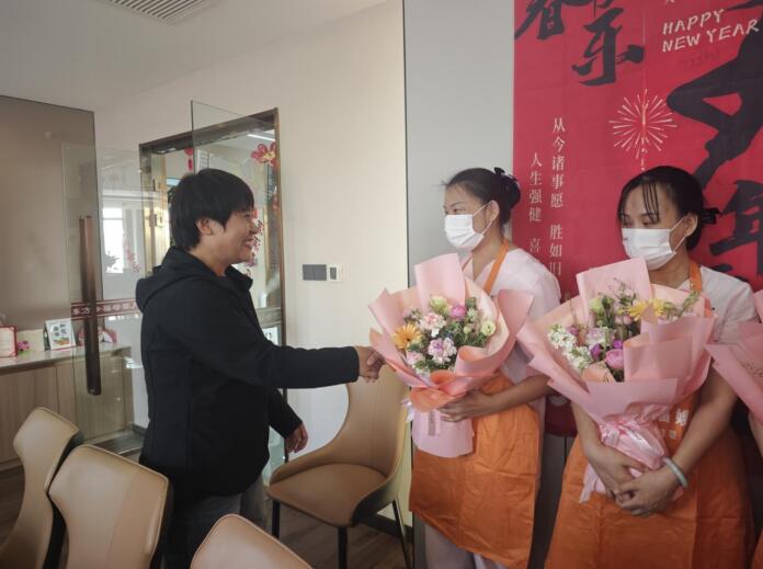 座谈会后,肃宁县老促会妇工委、县妇联一行为东方幸福国际母婴月子会所的“福嫂”们送上了精心准备的鲜花和慰问品。慰问组一行还实地参观了母婴月子会所的温馨月子房、婴儿游泳间、“福嫂”休息室,并与正在岗位上忙碌的“福嫂”们亲切交谈,感谢她们放弃与家人团聚的时间,24小时守护在宝妈和新生儿身边。