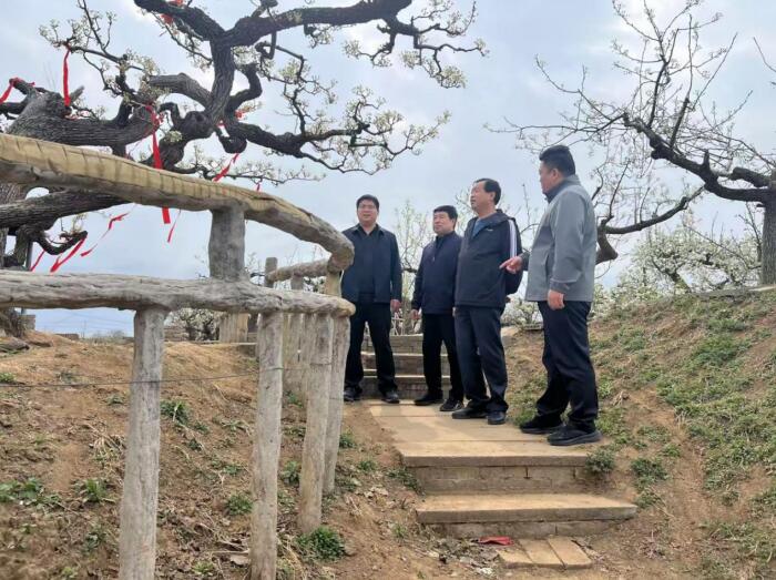 随后,班子成员一行来到万里镇尹庄村万亩古梨园,实地调研梨花文化大集节举办情况。时值盛花期,放眼望去,连绵梨园如云似雪,洁白的梨花挂满枝头,一幅“生态美、产业兴、百姓富”的乡村振兴画卷正徐徐铺展。