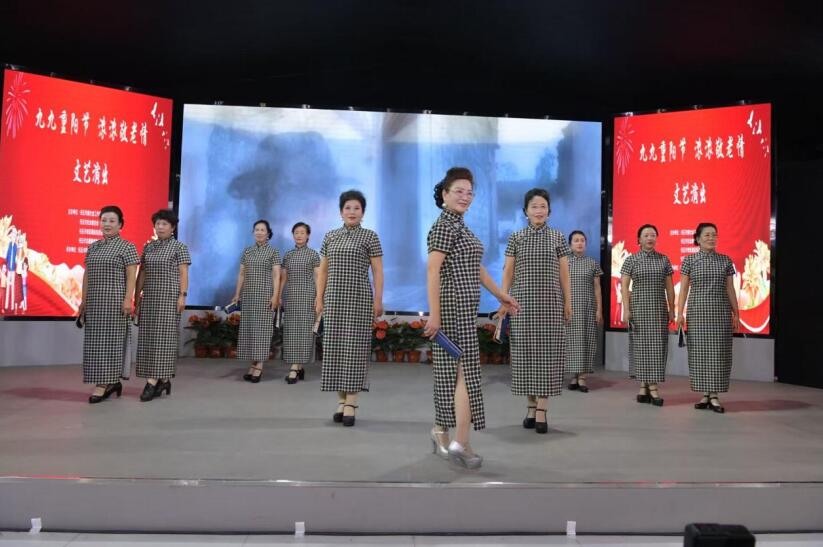 红歌大家唱星火团与全体演职人员二百余人共同登台,齐声高唱气势恢宏的《祖国不会忘记》《中国中国鲜红的太阳永不落》,用激昂的旋律和嘹亮的歌声,唱出对祖国的热爱与对老一辈建设者的崇高敬意,点燃了全场热情。在热烈的气氛中,16个精心编排的节目轮番登场,形式多样,异彩纷呈。优雅曼妙的舞蹈,展现了中老年朋友不减当年的活力与风采;风姿绰约的旗袍走秀,走出了东方女性的韵味与自信,尽显岁月沉淀之美;由李艳云创作编写的三句半,用乡音土语道出了志愿服务新时代的美好,引得掌声连连;深情并茂的朗诵,倾诉着对长辈的感恩与祝福,句句触动心弦。
