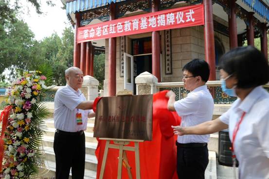 赵国岭会长和任丘市委常委、组织部部长王昭群共同为任丘市牛氏三杰烈士塔“革命老区红色教育基地”揭牌。