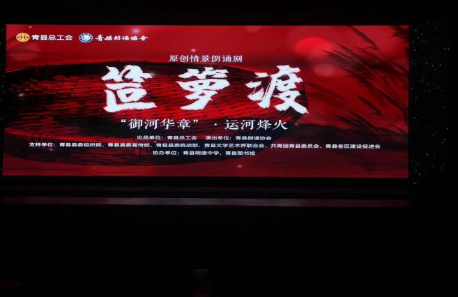 9月29日,新中国成立76周年来临之际,一部由青县县委宣传部、县委统战部、县总工会、县文联、县团委、县老促会联合精心打造的红色舞台力作——原创情景朗诵剧《笸箩渡》在青县明德中学礼堂精彩上演。全县各基层单位职工代表1000余人共同观看了演出。