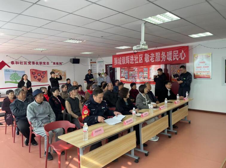 泰和社区常驻人口6700余户,每年冬季来自各县市区的老年流动人口高达2000余人。此次“狮城银辉进社区 敬老服务暖民心”活动贴合社区工作实际和老年人需求,充分发挥各部门、各单位的协同优势,协助社区开展工作,加强基层治理,多方面关爱老年人生活,让老年人生活得更加和谐美好。市检察院原四级高级检察官张俊贞结合现实案例,为社区居民深入讲解《中华人民共和国老年人权益保障法》,并就噪音扰民、遗产继承等社区常见矛盾纠纷提出调解意见。市老年协会相关同志为社区居民讲解如何领取高龄补贴、申请家庭适老化改造补助等居民关心的政策问题。市公安局老干部处邀请辖区民警为居民讲解常见的诈骗类型,提高老年人反诈意识。市工商银行向居民赠送《反电信网络诈骗法》宣传资料。