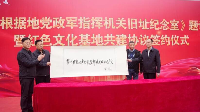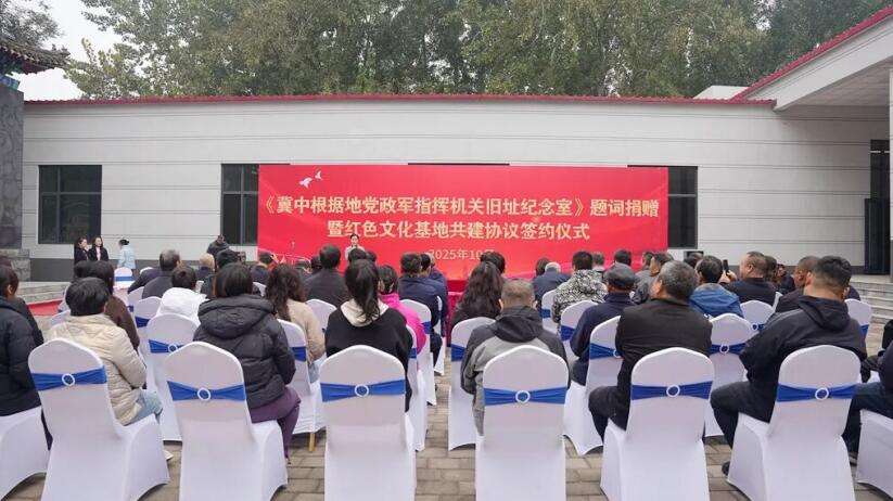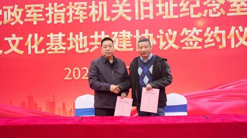 丁小雷同志代表中国文化信息协会多元文化工作委员会与冀中根据地党政军指挥机关旧址纪念室签订红色文化基地合作共建协议。